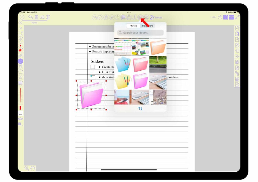 Getting started with stickers in ZoomNotes is surprisingly easy. Here’s how to do it: